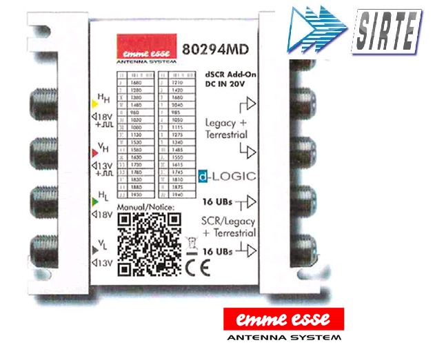 Da Sirte - Verna Elettronica trovi sempre l'Adattatore EmmeEsse 80294MD, progettato per la distribuzione di segnali satellitari e televisivi in impianti moderni e retro-compatibili. Grazie alla tecnologia dCSS (Digital Channel Stacking Switch), questo adattatore consente di gestire fino a 16 User Band su un unico cavo coassiale per ciascuna uscita.