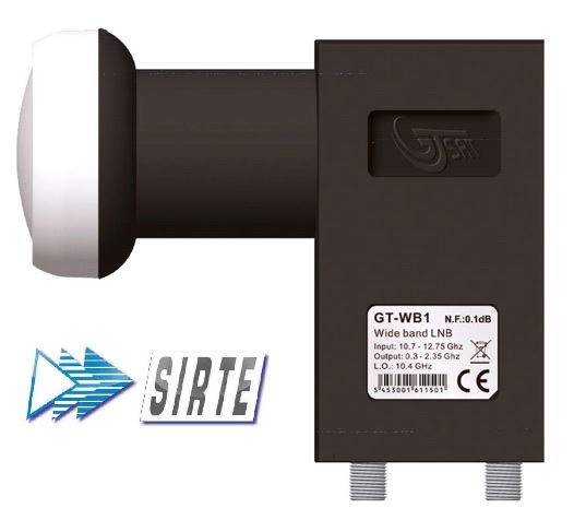 Il GTSAT GT-WB1 è un LNB Wideband progettato per impianti centralizzati, con 2 uscite H-V che distribuiscono un'intera polarità (H o V alta e bassa insieme) su un singolo cavo utilizzando tutta la banda disponibile (290-2340MHz). Questo dispositivo è ideale per moderni multiswitch che supportano ingressi WideBand, sostituendo efficacemente un LNB HVHV e riducendo il numero di cavi necessari.