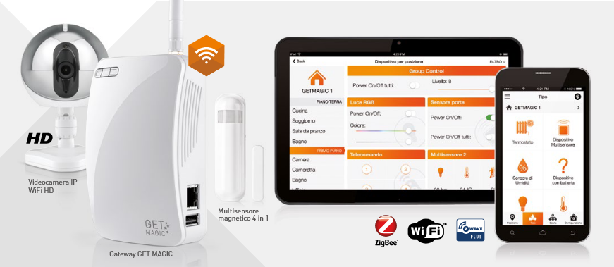 TELECAMERE Telesystem SMH GET MAGIC STARTER KIT Get Magic GATEWAY WIFI MULTISTANDARD MULTISENSOR 4 IN 1 INDOOR IP CAM TVEDO 101 - Get Magic