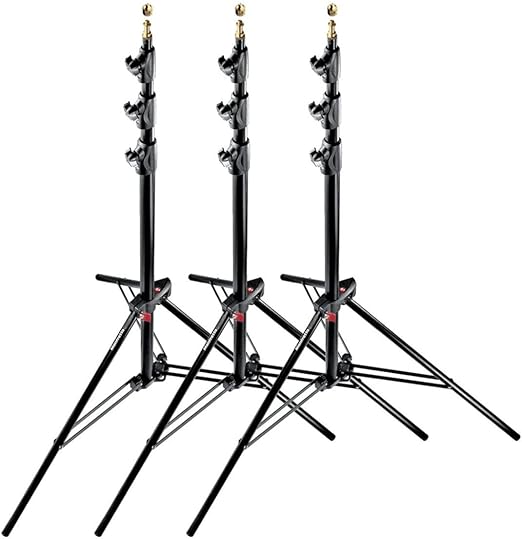 Manfrotto 1004BAC-3 Kit 3 Stativi, Serie Babylight, Massima Altezza 366 cm per Luci, 4 Sezioni, in Alluminio, Nero